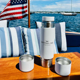 The perfect companion for the beach, the boat, or the office – our Springline MiiR Tomo draws its name from the Japanese word meaning “friend’ or “companion”. The double-wall vacuum insulated vessel holds up to 33oz/ 1L of your favorite Springline beverage, has a roll-stop handle and is built to store, tote and retain any temperature of beverage until it’s ready to be poured into two twist-off sipping mugs. Or you can skip the pouring and sip directly from any angle with the Leakproof 360 Lid.